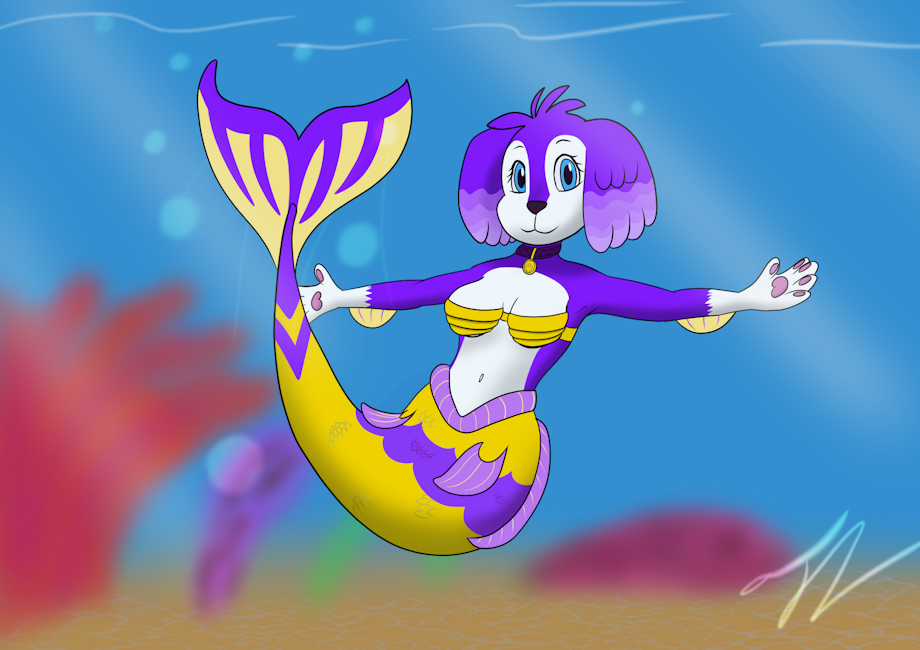 DecemberBreezee who drawn a fullbody of anthro marina (no fishtail) wearing a pretty blue dress she got for herself recently showing of how pretty she is.