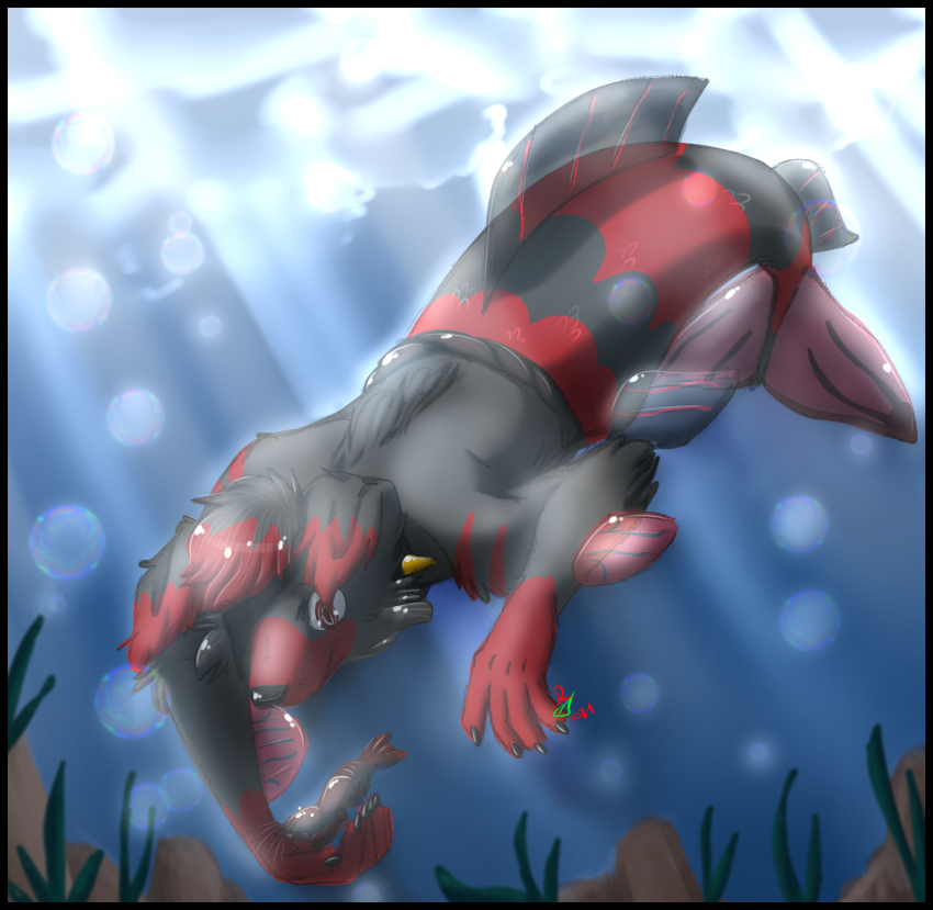 A friendly fire revenge I received from RollerRink who drawn a fullbody of my boi Merpup scorcher casually swimming around until he stumbled across a shrimp who needs help so he kindly helped it and then hold it for a few moments. And no he didn’t ate it.