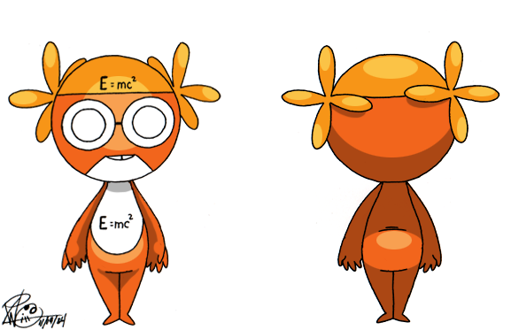 Vasysy is a orange colored Keronian who stands about 2 feet tall, which is the average height for a Keronian. She has yellow colored eyes beneath her glasses and a white underbelly, which is adorned with a E=mc2 symbol. Her light orange hat adorns the same symbol. Vasysy is the smartest member of the gymnastics team. Being a mathematical genius and quite knowledgeable in most forms of science, she's the usual go to for her friends when they need someone with smarts. Just don't go to her for anything vision based, especially when she doesn't have her glasses.... her visions total sh*t...