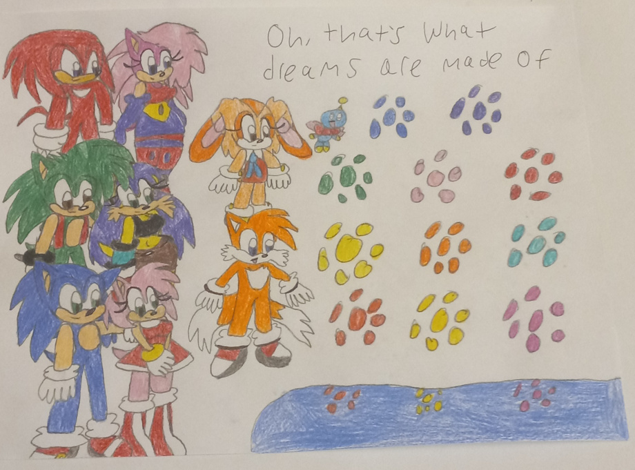Something for New Years. I know it's a little late, but whatever. Also based on the song "Dreams" by Van Halen. Sonic, Amy, Manic, Mina, Knuckles, Sonia, Tails, Cream and Cheese watches the fireworks at New Years after another victory over evil. Sound formular?