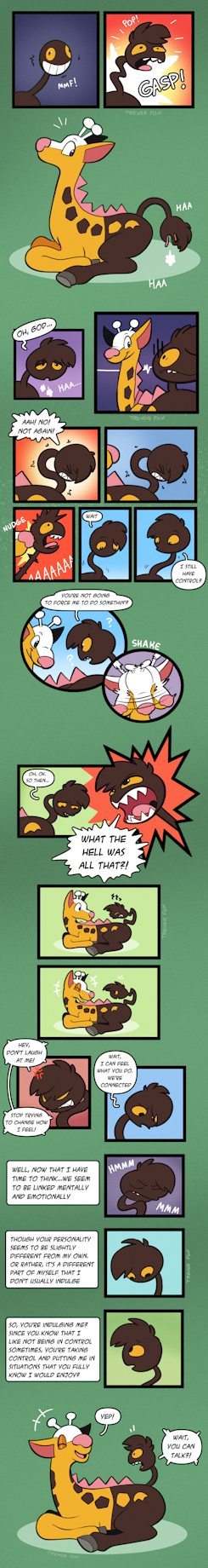 Y'know, it's funny because I've seen a lot of UDTF pics, and even though the first sequence was done pretty quick to get the idea out there, I had a fair number of people ask me who was the other half of the Girafarig. That was the part I thought the most obvious, but I guess not! I should have been more clear on that point. The head of the Girafarig is just my former tail, but now it has a mind of its own!
