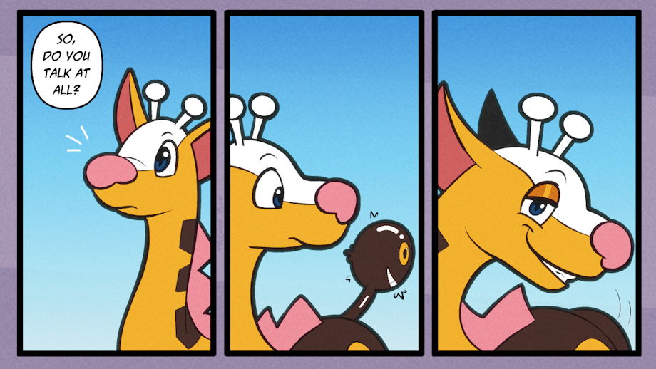 Y'know, it's funny because I've seen a lot of UDTF pics, and even though the first sequence was done pretty quick to get the idea out there, I had a fair number of people ask me who was the other half of the Girafarig. That was the part I thought the most obvious, but I guess not! I should have been more clear on that point. The head of the Girafarig is just my former tail, but now it has a mind of its own!