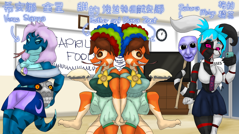 Clearly a very late take on April Fools Day of 2025, coming up with clickbait headlines, pranks and jokes, even up to extreme methods, all still under the same theme from the Chinese New Year, specifically the Year of the Wood Snake. This time, I've drawn another four of my female characters as snakes, wearing only in themed dresses, but safe to say, they have somehow transformed without their knowledge, now they don't care. But, care to pick one of these four?