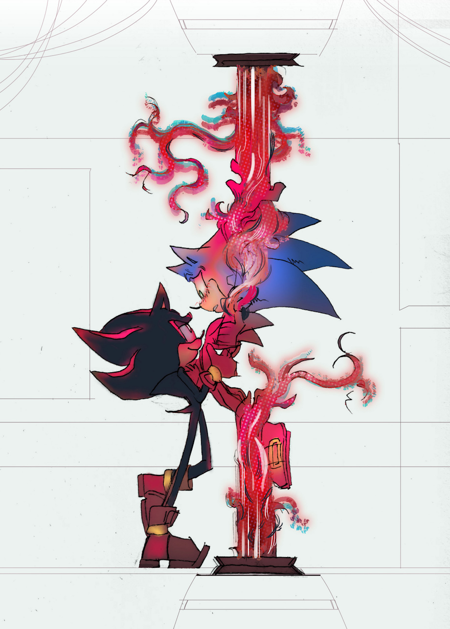 Inspired by the fact that Shadow should be one big tentacle and the friend I drew it for draws Sonic in ropes all the time so it's was only fair to make it bondage type of thing, mhm sdfghjkl