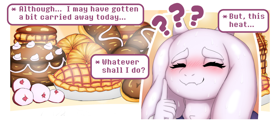 Toriel's been busy baking a feast of sweat treats! No wonder that dress of hers keeps getting tighter!
