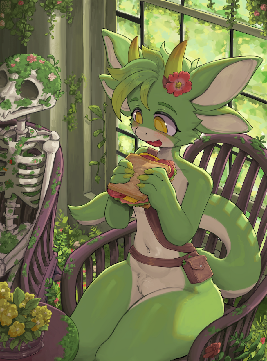 Kanya hated wearing clothes. However, throughout her wanderings and travels across the world, she discovered that everyone liked wearing clothes. She also discovered that the lack of clothes was quite alluring to many people. This fact made her finding a partner whenever she felt the need for intimacy an easy affair. She'd pick her promising target and present herself in an alluring fashion. Their natural instinct response of flight-or-fight at the sight of her did deter some at first, but the allure and promise of something pleasurably nice usually got them to overcome their fear of her. Over a period of hours, days, and rarely sometimes weeks, she'd get her target accustomed to her presence and be curious about her enough to follow her out into the woods, away from family, friends and prying eyes. There, she'd present herself with an offered gift so enticing, it wasn't more but a couple seconds before she enjoyed the feeling of being wrapped in someone's arms again, lovingly filling with their passions and lust. It was an art form, and she was the master at it.