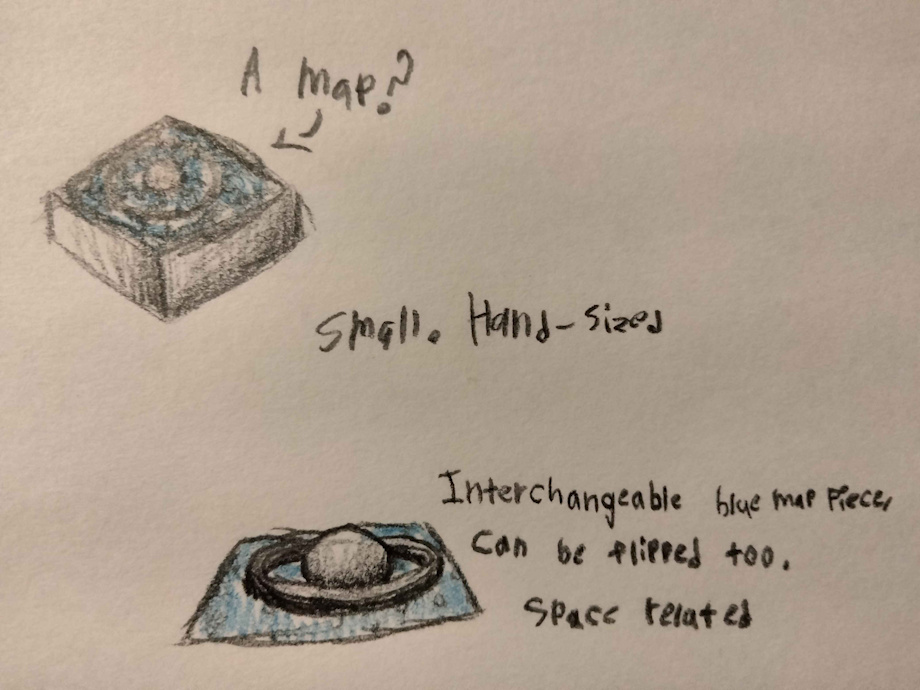 " | spinning the object in my mind still. the ring and ball were magnetic to the main block, and the blue piece was too, and there were multiple - found another not too long after the main thing. some writing on the second piece on both sides like someone wrote notes on it, both had a lot of shapes, circles and lines and dots, in silver. the ball was also like. roughly egg sized, maybe a little smaller, can still remember the exact size of the object and how it felt and this is absolutely gonna plague my mind for a bit |