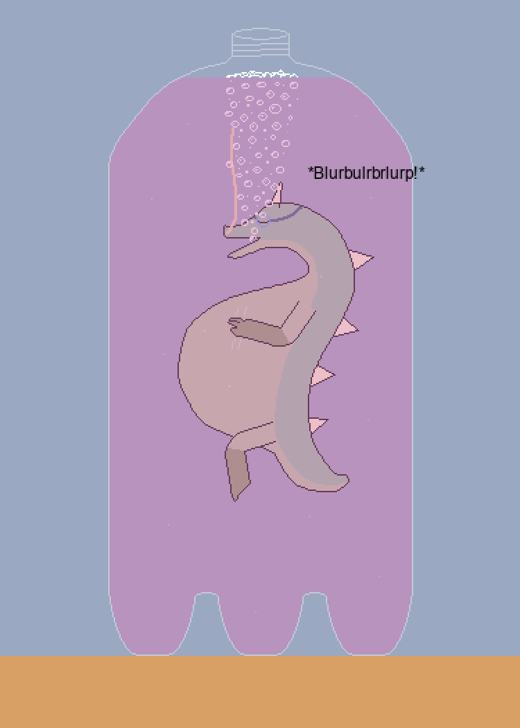 As Cirrus enjoys sometimes, he got himself a bottle of soda, shrunk himself down, dove in, and just started gulping. Soda gradually poured into his belly, and after about 30 seconds of drinking, his stomach was beginning to expand with all of it, getting bigger and bigger over time as the dragon happily continued. Already he was quite beyond what most people would be able to manage, and there was no sign of him slowing down, even once he'd gotten to the point where the size of his belly would be keeping him from getting back out of the bottle until it'd eventually go back down.