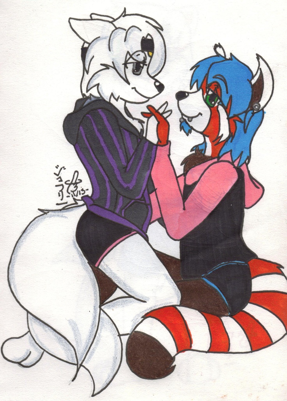 So, after a long art block (as is apparent by the freekin' dates @_@) this picture was sketched in late '11, and just inked and coloured today in '13. Second in my Hoodie Swap series, this time