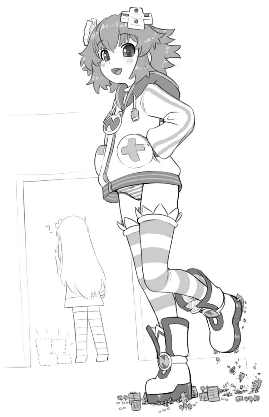 Honestly if I didn't know better I'd say that was just Neptune's normal digs. They work great on her! Very cute Nepgearboot stomps, they're perfect for the job as repeatedly proven many times over by now. Cute Nepantsu (The hoodie is the gift that keeps on giving) and Gearconfusion hahaha. Using Nepgear's boots to stomp on Histy's model collection, wow Neptune!