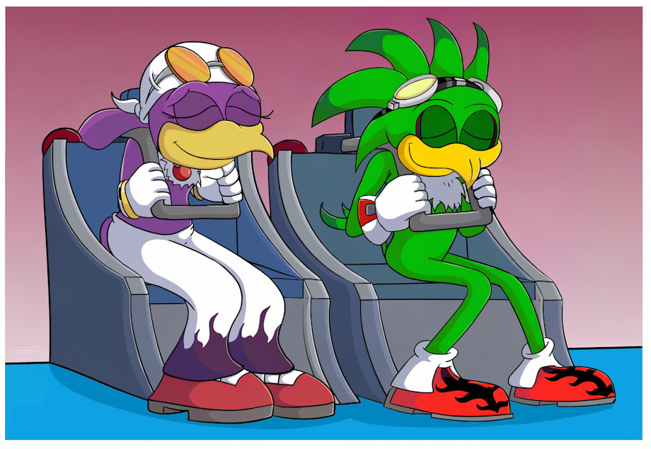 ''Sometime when the ship is in smooth space, Jet the Hawk & Wave The Swallow will attach the pod to a steel cable, Then thay set a timer on the podbay doors for 10 minutes, After that thay get inside the pod & lock its door, Secure themselfs in the seats with the shoulder restraints, & wait for the timer to runout, When the timer hits the end of the last minute, The podbay doors open up, & the pod is launch out of the ship, The steel cable then shops the pod from leaving the ship completely, Stoping just a mile away from it, After that the pod is left to float about in space, With Jet & Wave relaxing inside the pod, thay both love the feeling of weightlessness, & injoying they time being alone together,''