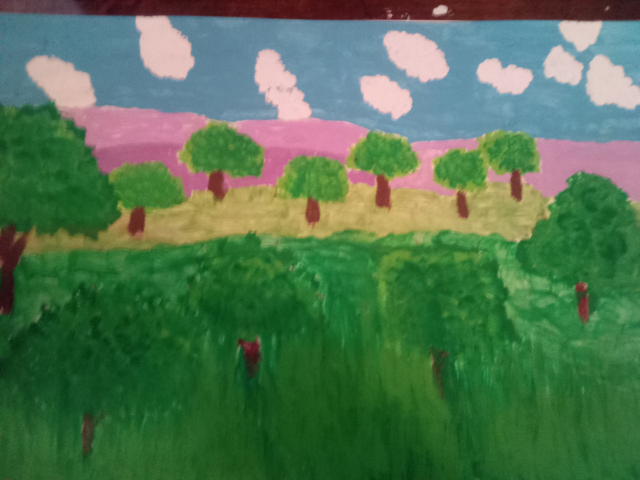 I have more coming, this is the kind of art I work on. I usually do a bunch of stuff in colored pencil, then go back over it in acrylic paint. Many things I have water in them, this one I do not. I often place in creeks and streams, but this one I placed none of that in it.