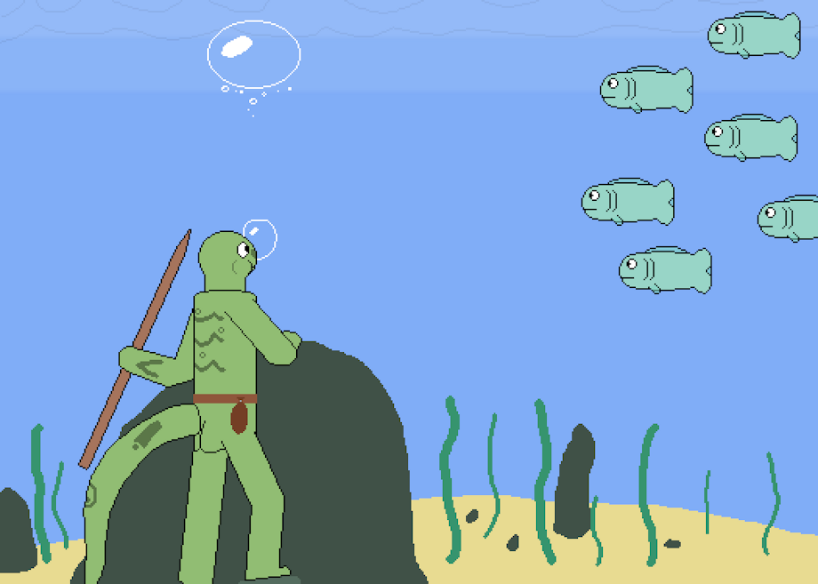 On the shore of the ocean, there exists a tribe of reptiles of all kinds that lives off said ocean, diving for fish and materials. That's how it's always been for them, but a long time ago, how they did it changed. One day, some of the tribe's divers found an underwater temple that held a powerful artifact dedicated to a sea god! They took it back to the tribe, and used its power to bless everyone: From then on, everyone in the tribe, even future generations, would have 10 times the breath holding ability, as well as clear speech and vision underwater!