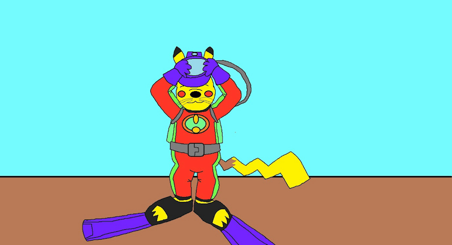 Here is my Pikachu Character Ryan who is a Scuba Diving. He is gearing up and diving in the waters of Vermillion city.