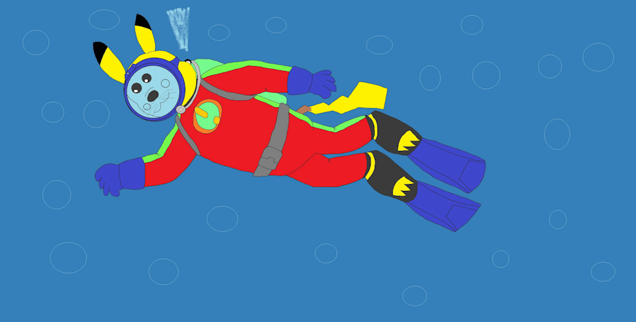 Here is my Pikachu Character Ryan who is a Scuba Diving. He is gearing up and diving in the waters of Vermillion city.