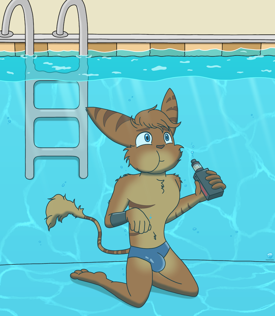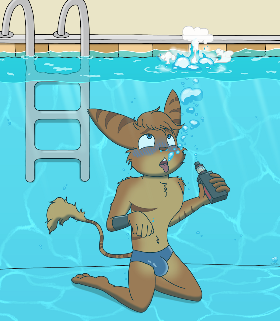 I've thought about doing something liek this, take a vape in, go under, blow smoek bubbles <3 Hot stuff and i love that he drowns himself having fun <3 I certainly would ;3
