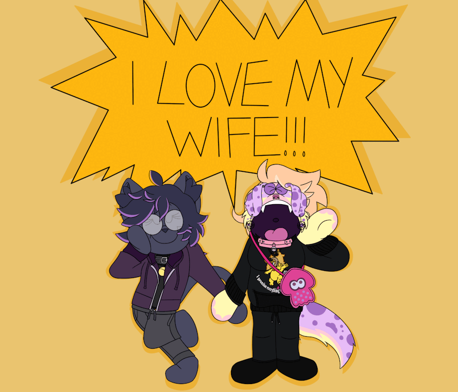 Some gift art I made for my partners for this years Valentines day including floofy the cat (@/bloof on FA), Apricot the dogcow (@/themuttapricot on FA) and River the jackal wolf (@/wyldriver on FA)