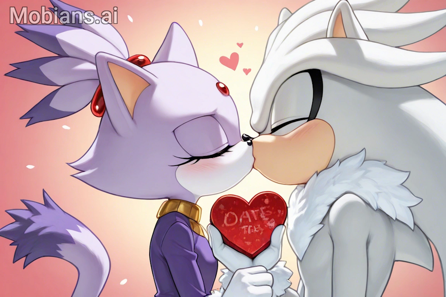 2nd Prompt: masterpiece, best quality, amazing quality, absurdres, very aesthetic, high resolution, Silver the hedgehog, valentines day, date, Blaze the cat, kissing