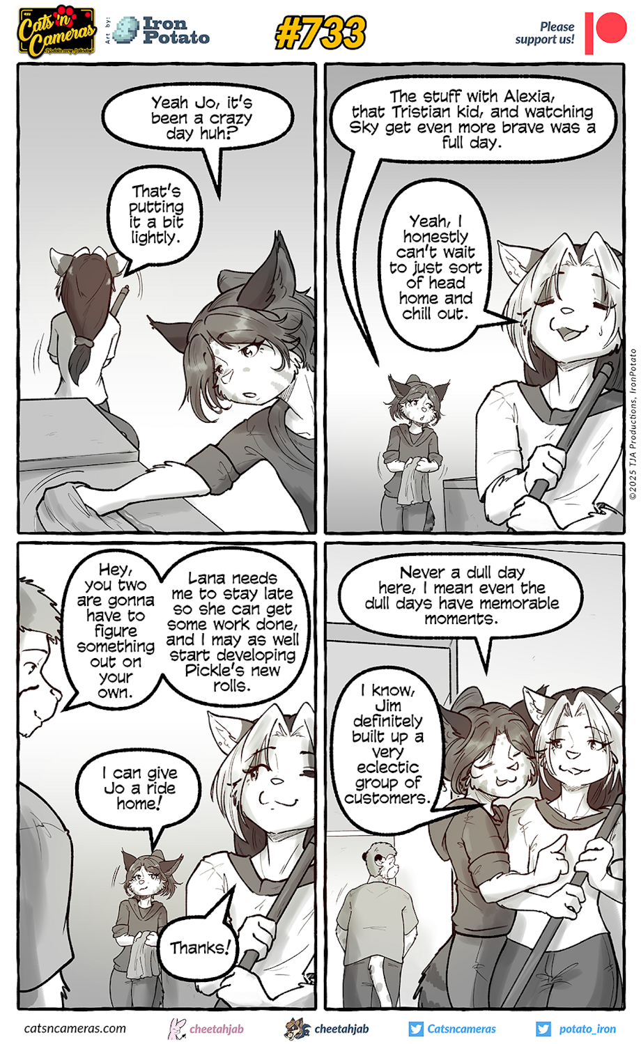 As the day comes to a slow end, we clean up and reflect on the past events that shaped us so far, Alexia, The Knight Family, Learning about Otter powers and Itty Bitty Titties, but Alas, Jim needs to stay late, as Lana needs to get some work done.. The day.. is far from over.