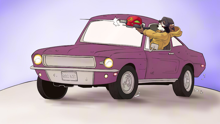 Rocket Raccoon seems to be going after a bounty like they do in the big city.