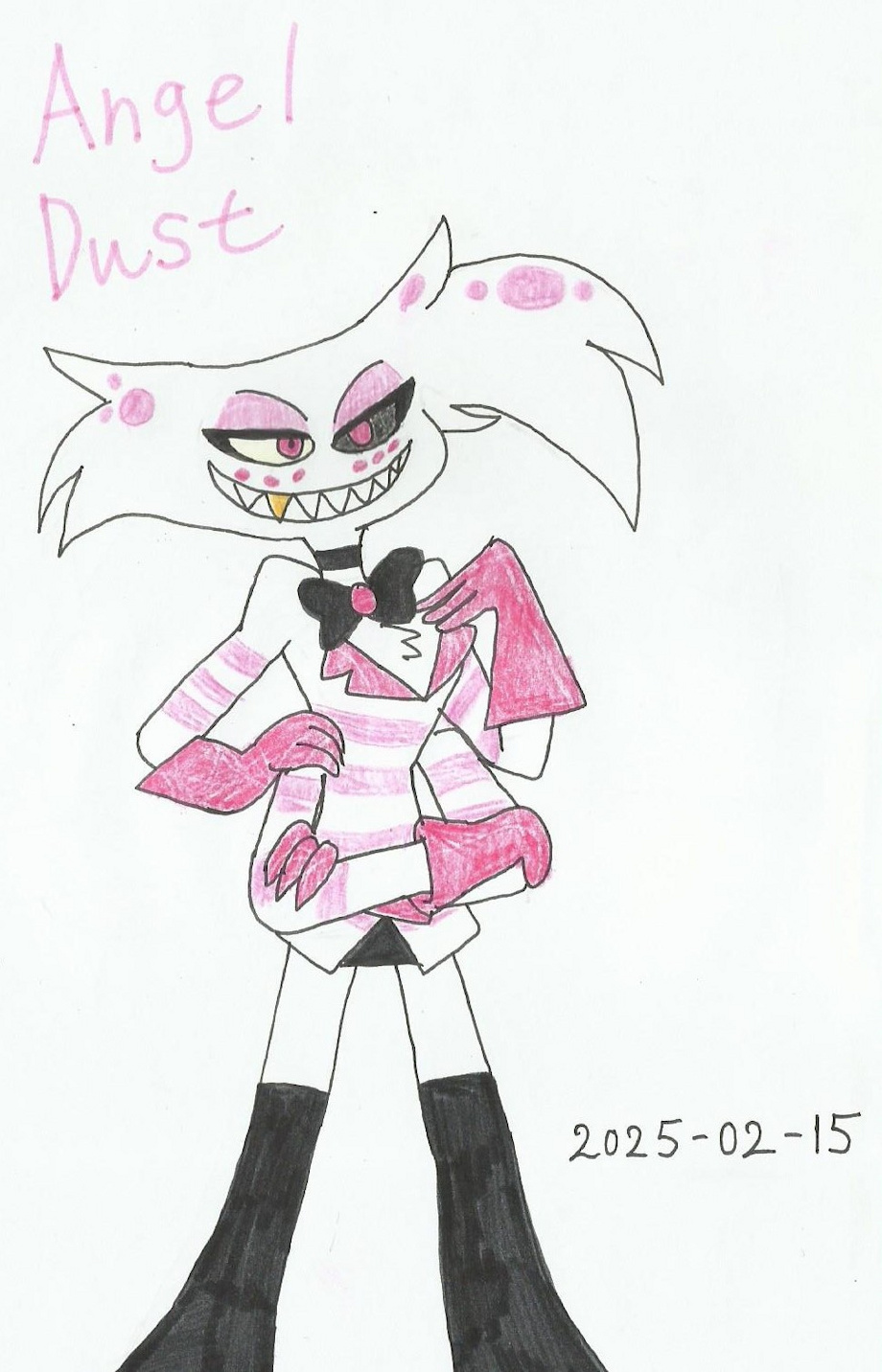 This is the first time I ever drawn a Vivziepop character. Angel Dust aka Anthony from Hazbin Hotel. I'll admit, he's hard to draw. So I used references to draw him and I chose to draw him in Pilot outfit instead of Main series outfit. Dont get me wrong. His main series outfit isnt so bad at all.