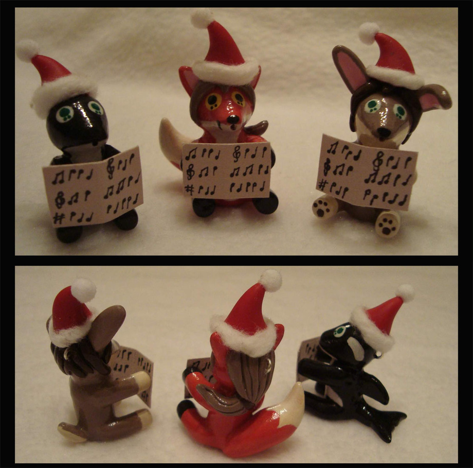 They're little caroler Christmas ornaments , though hanging from a tree or perched on a desk, they'll still be singing their silent carols :)