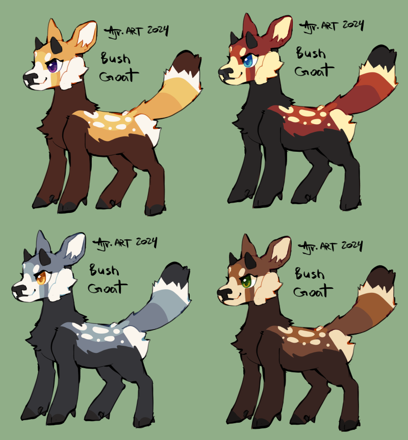 Just testing out what the other colors of brush goats I was imagining in my dreams. Such a lovely variety! I wonder if anyone wants me to make adopts out of these silly panda-goats...