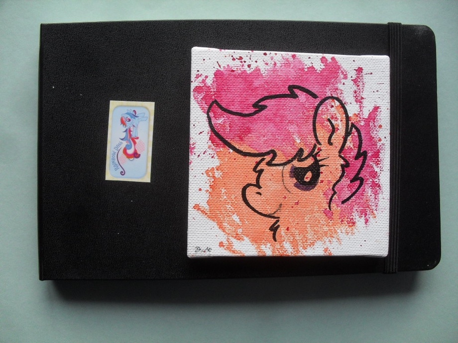 Small ink painting of Scootaloo. Well, actually, it's liquid paint this time, but the same techniques are applied. Yay!