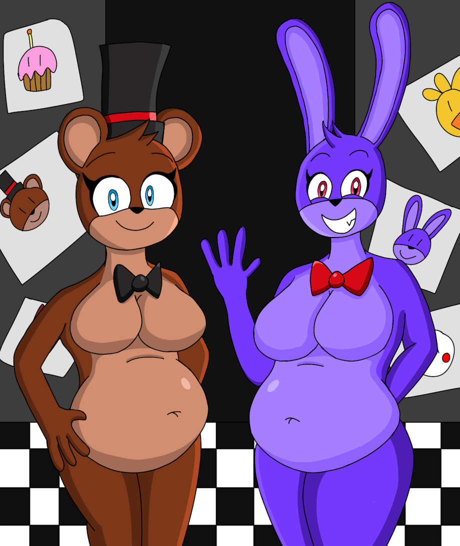 I was in the mood to draw some FNAF characters, so I genderbent Freddy and Bonnie.