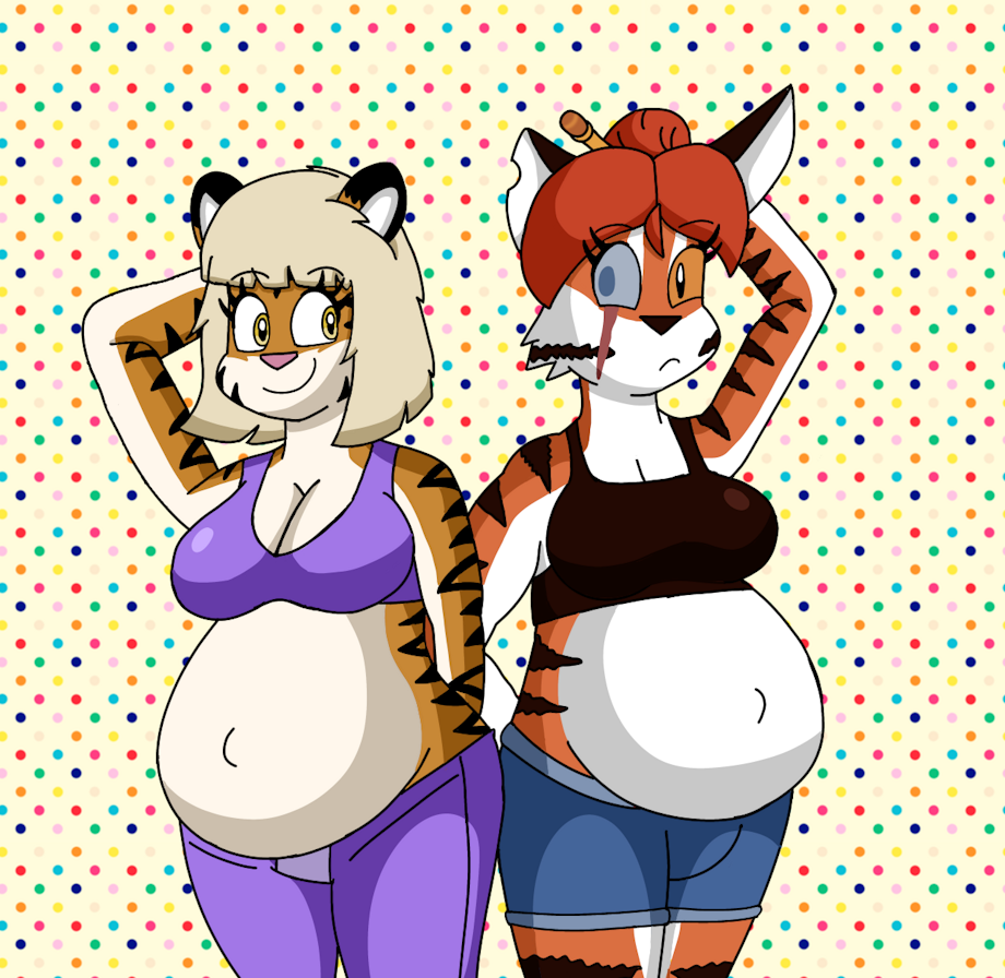 So, you remember how I said that I was gonna draw more of RoseyThePreggoRascal's characters? Well, the next character on the list was Abby, Rosey's tiger girl. I wasn't sure what scenario I should draw her in, so I added Lewdatums's tiger girl, Fen. So, I guess this is a gift for both of them.