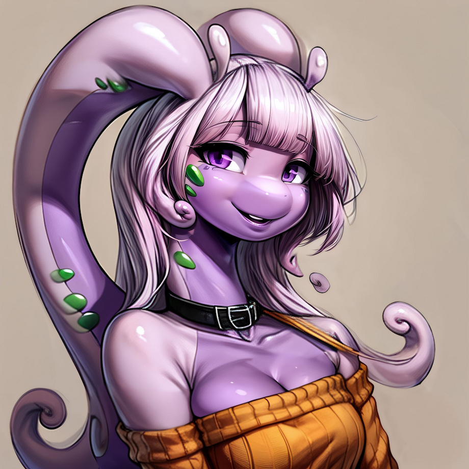 masterpiece, best quality (solo) <lora:CharacterDesign_Concept:0.2> (CharacterSheet:1), (multiple views, full body, upper body, reference sheet:1), (sweater, black pants:1.4) BREAK <lora:Slimes_V01:1> slimes BREAK A (female:1.4) (goodra:1.4) (hair:curled:1.5) (medium breasts1.4) (long hair:1.4) (side swept bangs:1.4) (curvy:1.4) (purple eyes with black pupils:1.4) (black collar:1,5) Negative prompt: bloodshot eyes, arms behind back, hands behind back, blurry, blurry background, bad anatomy, bad hands, three hands, three legs, bad arms, missing legs, missing arms, poorly drawn face, bad face, fused face, cloned face, worst face, three crus, extra crus, fused crus, worst feet, three feet, fused feet, fused thigh, three thigh, fused thigh, extra thigh, worst thigh, missing fingers, extra fingers, ugly fingers, long fingers, horn, realistic photo, extra eyes, huge eyes, 2girl, amputation, disconnected limbs, worst quality, normal quality, low quality, low res, blurry, text, watermark, logo, banner, extra digits, cropped, jpeg artifacts, signature, username, error, sketch ,duplicate, ugly, monochrome, horror, geometry, mutation, disgusting, jpeg artifacts, bad quality, jpg artifacts,badhandv4, easynegative boring_e621_v4, bad quality, worst quality Steps: 35, Sampler: Euler a, CFG scale: 7.5, Seed: 1854592474, Size: 768x1152, Model hash: 11418ef90f, Model: yiffymix_v43, VAE hash: 24e650297c, VAE: furception_vae_1-0.safetensors, Variation seed: 2063489305, Variation seed strength: 0.43, Denoising strength: 0.4, CFG Rescale: 0.7, ADetailer model: face_yolov8n.pt, ADetailer confidence: 0.3, ADetailer dilate erode: 4, ADetailer mask blur: 4, ADetailer denoising strength: 0.23, ADetailer inpaint only masked: True, ADetailer inpaint padding: 32, ADetailer version: 24.1.2, Lora hashes: "CharacterDesign_Concept: 6f65857a23ad, Slimes_V01: 48e3ad4240f0", TI hashes: "badhandv4: 5e40d722fc3d, easynegative: c74b4e810b03, boring_e621_v4: f9b806505bc2", Version: v1.6.0 postprocessing Postprocess upscale by: 4, Postprocess upscaler: 4xUltrasharp_4xUltrasharpV10.pth extras Postprocess upscale by: 4, Postprocess upscaler: 4xUltrasharp_4xUltrasharpV10.pth |