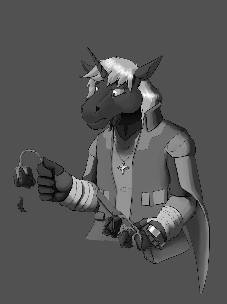 A portrait of their latest ttrpg character, a healer dealing with death :(