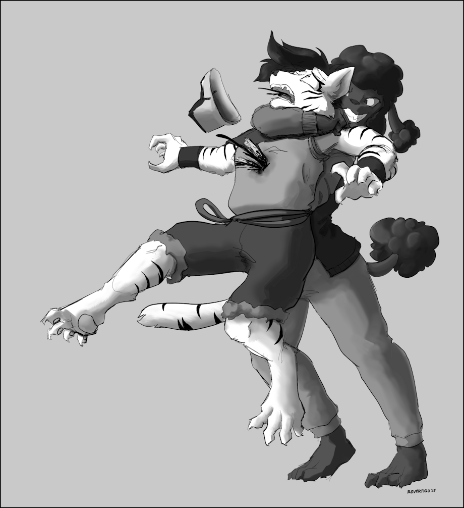 Kyra caught completely unaware by an originally unarmed and unassuming poodle.