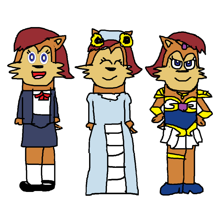 Sally Acorn in three outfits of Yuri Tanima, a.k.a. Angel Lily.