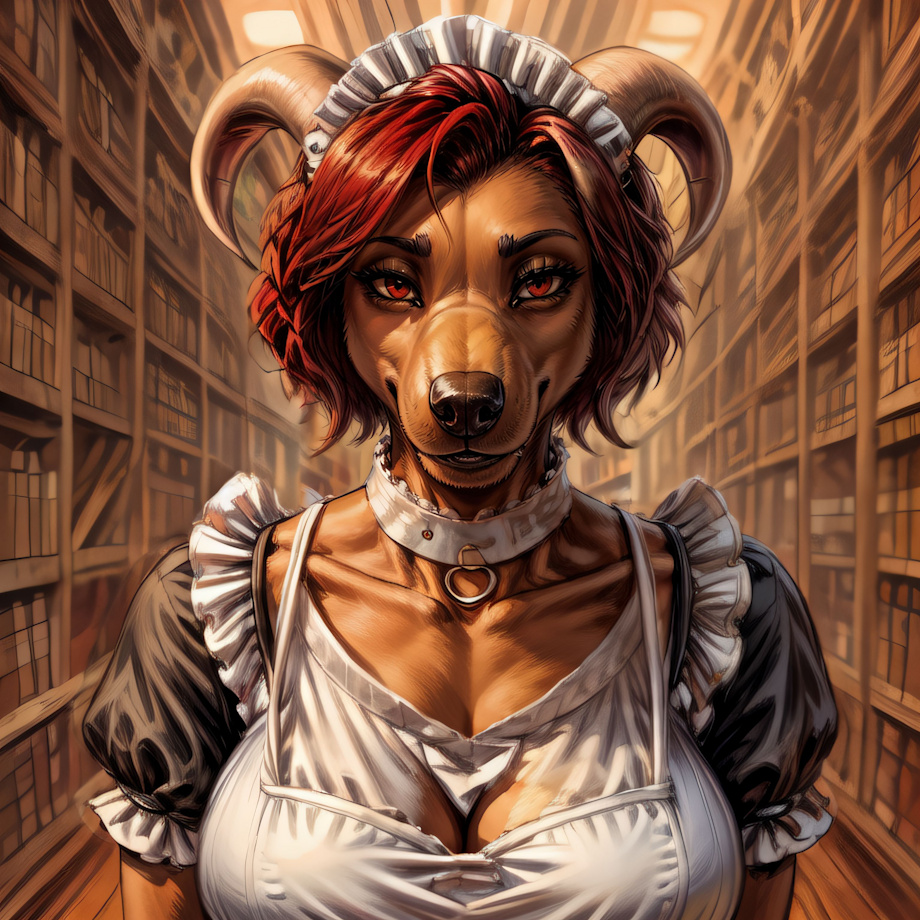 masterpiece, best quality <lora:(1) Furtastic Detailer:1> (maid uniform:1.4) BREAK <m0rg4nn4> A (mature:1.2) (female:1) (houndoom:1.3) with a (voluptuous:1), (milf body:1.2) , (medium breasts:1) with (black nipples:1), (yellow horns:1), a (forked tail:1) and (red eyes with black pupils:1). She has (short red hair:1.3), and wears a (silver collar:1). GS-Womanly j3nny-001 <lora:bridal_hairstyle:0.8> bridal_hairstyle, <lora:CharacterDesign_Concept:0.6> (CharacterSheet:1), (multiple views, full body, upper body, reference sheet:1),, (clothes:2) Negative prompt: bloodshot eyes, arms behind back, hands behind back, blurry, blurry background, bad anatomy, bad hands, three hands, three legs, bad arms, missing legs, missing arms, poorly drawn face, bad face, fused face, cloned face, worst face, three crus, extra crus, fused crus, worst feet, three feet, fused feet, fused thigh, three thigh, fused thigh, extra thigh, worst thigh, missing fingers, extra fingers, ugly fingers, long fingers, horn, realistic photo, extra eyes, huge eyes, 2girl, amputation, disconnected limbs, worst quality, normal quality, low quality, low res, blurry, text, watermark, logo, banner, extra digits, cropped, jpeg artifacts, signature, username, error, sketch ,duplicate, ugly, monochrome, horror, geometry, mutation, disgusting, jpeg artifacts, bad quality, jpg artifacts,badhandv4, easynegative boring_e621_v4, bad quality, worst quality, bloodshot eyes, 2 tails, black fur on forearms, black fur on legs, bell on ears,, (nipples, nude, nudity:2) (erect nipples:2) (topless:2) Steps: 35, Sampler: Euler, CFG scale: 7, Seed: 599915816, Size: 768x1152, Model hash: 8e2f4f1346, Model: yiffymix_v44, VAE hash: 24e650297c, VAE: furception_vae_1-0.safetensors, Denoising strength: 0.41, Mask blur: 4, CFG Rescale: 0.7, Lora hashes: "(1) Furtastic Detailer: 2e94914f676c, bridal_hairstyle: 408f7d0492fc, CharacterDesign_Concept: 6f65857a23ad", Version: v1.6.0 postprocessing Postprocess upscale by: 4, Postprocess upscaler: 4xUltrasharp_4xUltrasharpV10.pth extras Postprocess upscale by: 4, Postprocess upscaler: 4xUltrasharp_4xUltrasharpV10.pth |