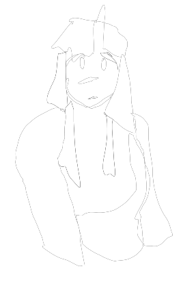 [a very thin-lined faint bust of eve. she's looking straight ahead.]