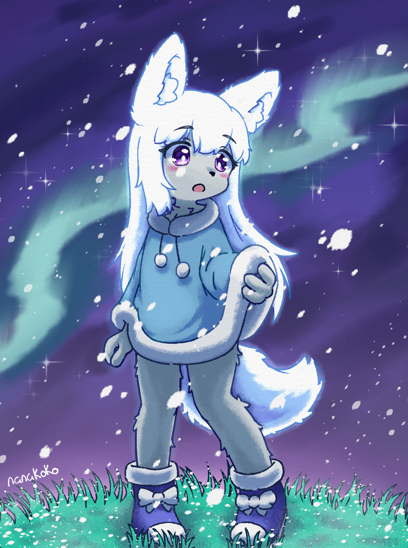 Koko looks absolutely breathtaking under the shimmering aurora! The way her fur glows against the night sky, paired with that cozy winter outfit, makes her feel like a true snow fox and gives off a spiritual vibe! The soft colors and lighting give such a magical, dreamlike atmosphere, I can almost feel the crisp winter air just looking at it! 🦊 💙