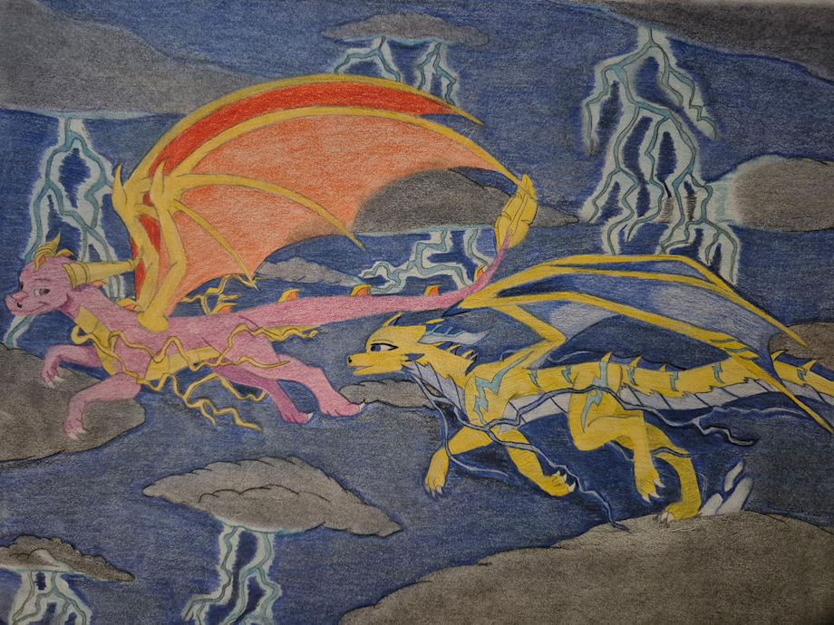 For the couple hours they lounged about while Caelus studied, yet he would glance over at Cynder reading one of Lynerus books, manipulating the wind he guided it over to the clueless blue dragoness slapping her rump. Yelping she looked at Caelus and he was already racing upstairs laughing. “Oh, ancestors no. You are not getting away with that wind boy.” Both leaped from his balcony with Caelus glancing back to see she tried boosting herself with her wind ability she attempted to tackle him but flew under as he flapped his broad wings, smiling at her attempt, he merely flapped his broad wings and like a rolling cloud he by passed the dark blue dragoness once more, only this time she tried to knock him off course with her wind breath, yet he used that and somersaulted forward, blasting her wings with a stronger gust of wind sending her into a spiral for a brief moment. Realigning herself she gave a soft growl, “of course he would redirect my attack…but he didn’t like shadow.” While thinking to herself, Cynder failed to see Caelus dive down. Now that he was directly under her he got to admire her form, she had a nicely toned body, slim, graceful but powerful, her chest did not protrude out as much but still prominent. She was stronger than she looked and just as agile as her appearance suggested, not too mention she had a really cute ass. Shoving his wings downwards propelling himself upwards, giving her rump a smack with both paws this time, she gave out a loud yelp as both cheeks were struck. “Why do you go for my ass?”