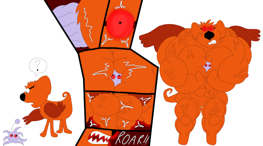 Here is a Muscle Growth Crossover Picture featuring Ralph the all purpose animal from Twice Upon A Time(1983) and Watagash from Dragonball