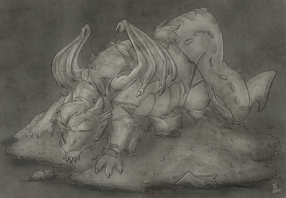 Sometimes the best thing for your body after a big change is some well-earned sleep. And that's just what Hareweald did...as soon as he found a big pile of gold to nap on! You can bet he's sleeping soundly, now that he's found enough loot to replace all the clothes he's shredded through over the years!