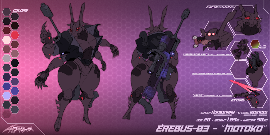 Meet the mysterious alien insectoid "Motoko", a Furreakverse reinterpretation of my D&D Gloom Stalker Thri-Kreen.