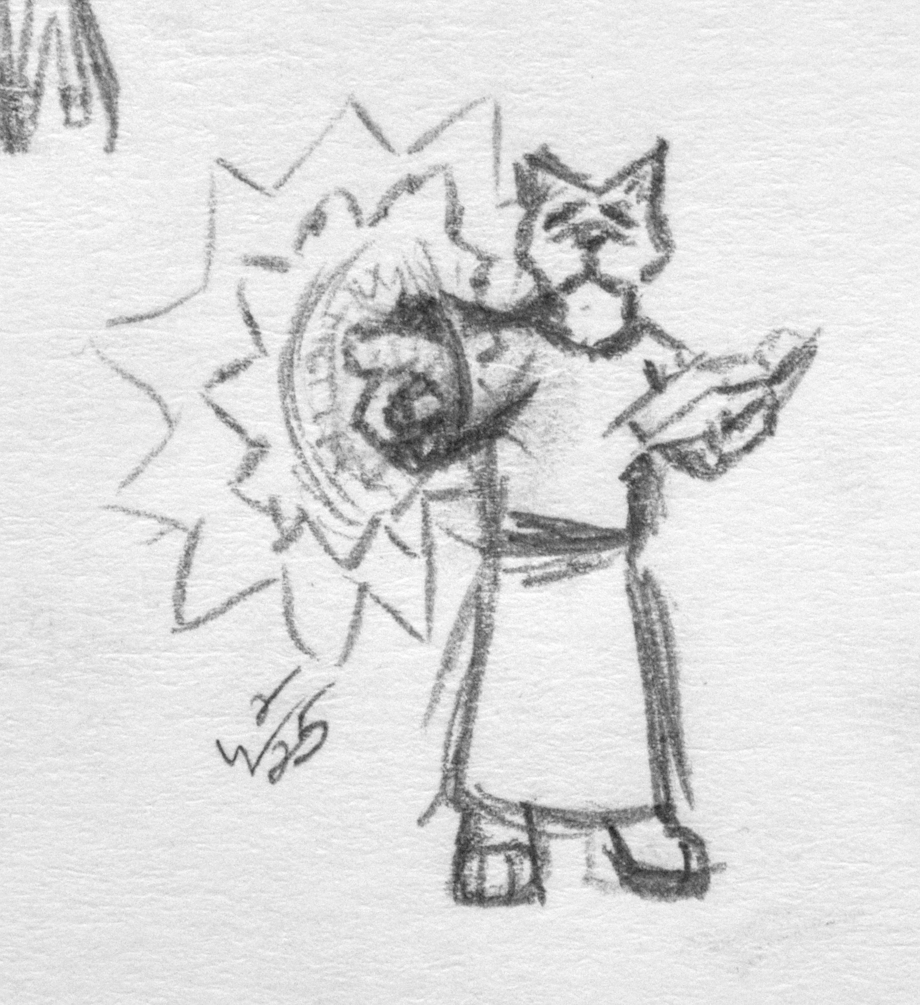 Here's a fun fact: I wanted the original spellcaster piece to feature a camera angle similar to this, but I flattened it due to a skill issue (thus leaving a perspective error that I never fixed on the original piece). I doodled this more recently because i wanted to see how it'd look, and I do quite like it.