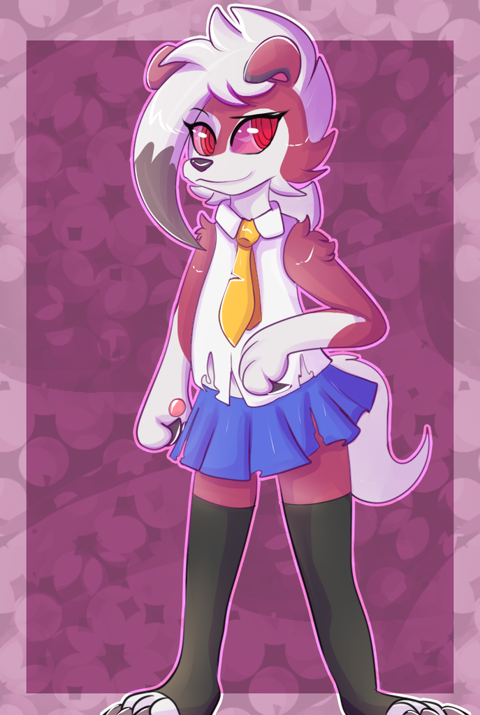 Introducing my Lycanroc, Lyra!. She’s a naughty, dumb dumb schoolgirl who eats her homework and always gets into trouble >:3