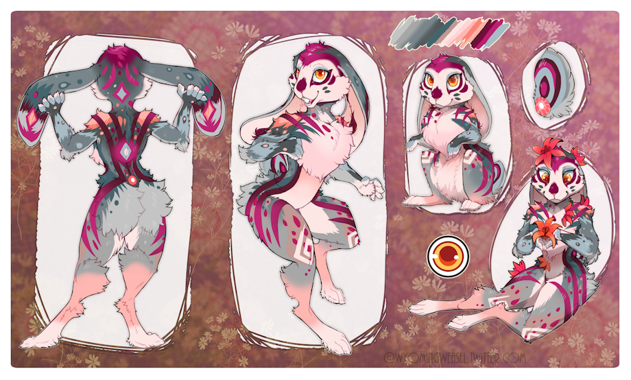 Tigerlilly the rabbit umosu. He is a very sweet, feminine soul. All umosu love plants and the majority of them have a living as gardeners, farmers, horticulturists, and botanists. Tigerlilly works as a gardener and horticulturist for Goddess Selena at her temple. He helps the goddess of nature with her massive garden and flower displays during the spring and summer. During the winter he helps in the greenhouses tending to vegetables. Tigerlilly and his two wives work on their own personal garden outside Cafe Mocha.