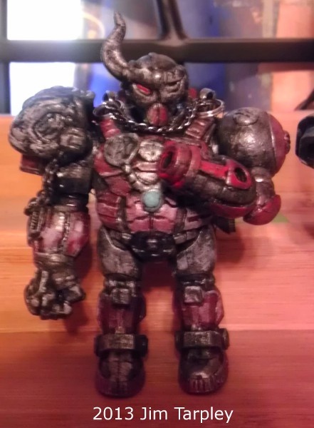Again, using a Hero's Duty Ralph figure with a Callgrim (a series of Glyos-compatible toys) head and various Glyos bits replacing the left arm. Used aquarium sculpting putty for various details.