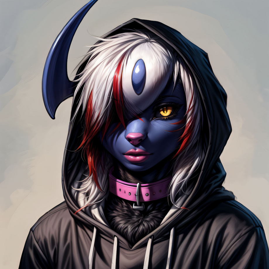 Tonya is the manager for Lin's band, often making sure things run smoothly behind the scenes. She doesn't like to be the center of attention so she rarely is ever seen by the audience, which is a good thing too because Absol are usually seen as bad omens. Tonya covers her face with her hair to avoid attention. Having an innate talent for how things will turn out - her strongest feeling of wealth emerged the first time she heard Lin sing. Her personality clashes with Crista Beth so the two are rarely seen speaking to one another. Her and Kori Amber can usually be found drinking together after a successful performance.