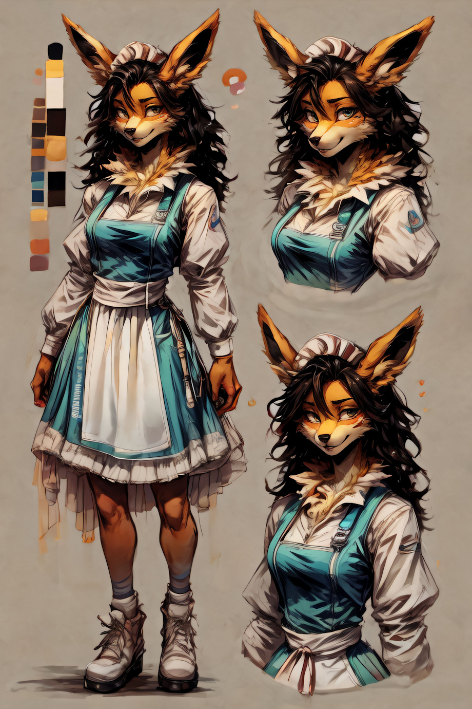 Large Breasts, Long Legs, Yellow/White Spiked Fur, Spiky Chest Tuft, Spiky-Stubby Tail Tuft