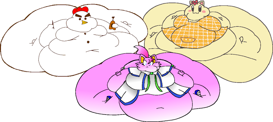 from left to right: Mr. Tok from Black Belt Challenge, (unnamed pink fox that i keep calling Kitsu) from Nintendo Daijiten, and Kororo from Neko Neko Bakery