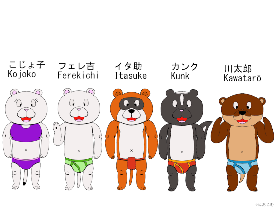 The Undies Weasels(下着イタチ) are seven friendly furries who live on Bedwetter Island.They are all 9 years old.