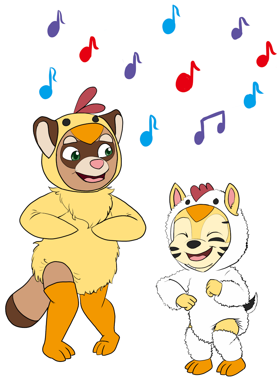 Tavi mentioned suiting in a Mardi Gras Chicken Parade and I couldn't resist the adorableness. I've had that song stuck in my head all day lol.